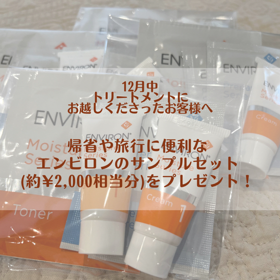 12月中トリートメントにお越しくださった方皆様に、エンビロンサ… 今月のキャンペーン