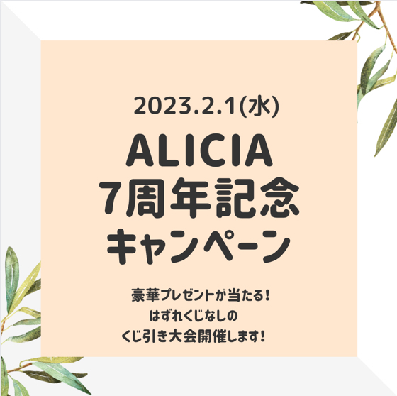 ALICIA7周年記念!毎年恒例の外れくじなし!豪華景品が当た… ALICIAについて今月のキャンペーン -