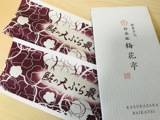 今日のおもてなしは、神楽坂 梅花亭の鮎の天ぷら最中♪ 今日のおもてなし -