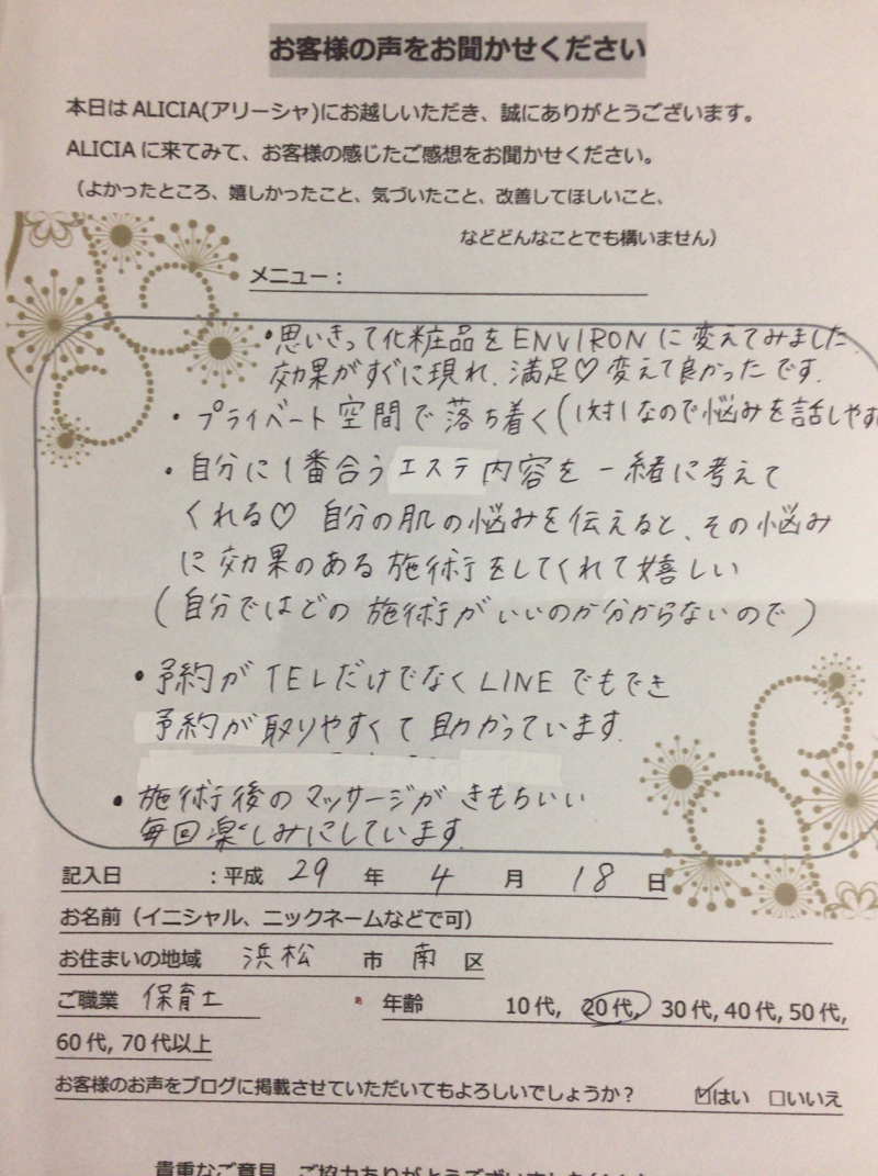元気とやる気の源!お客様の声♪ ALICIAの日常お客様の声 -