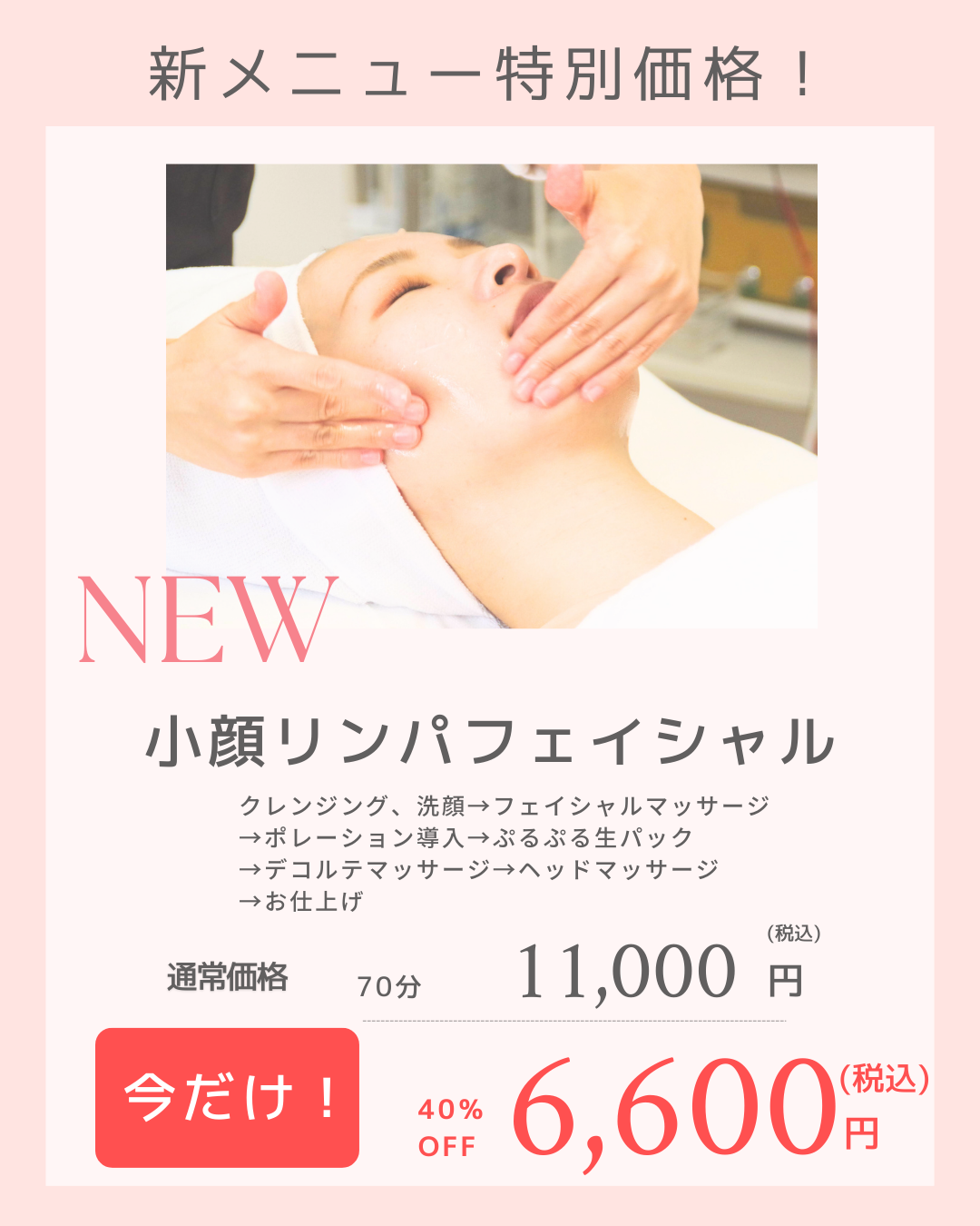新メニュー!小顔・リフトアップ・癒しを一度に叶える オールハンドの贅沢フェイシャルケア